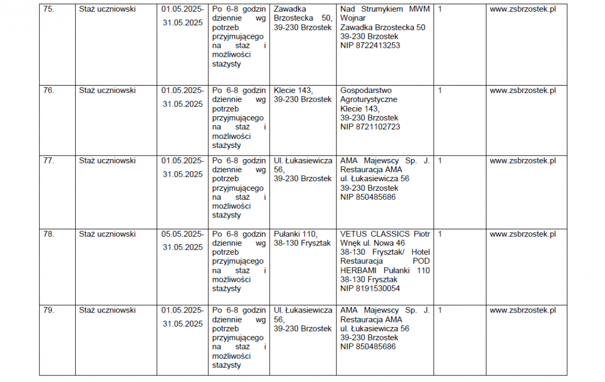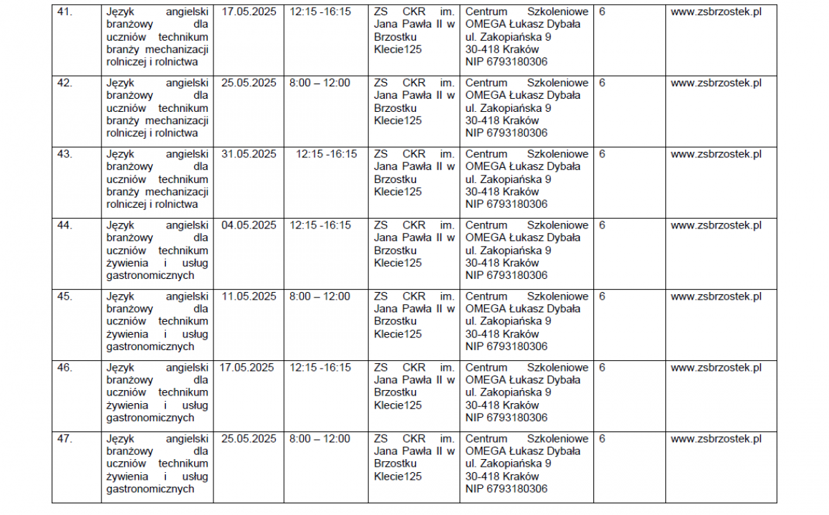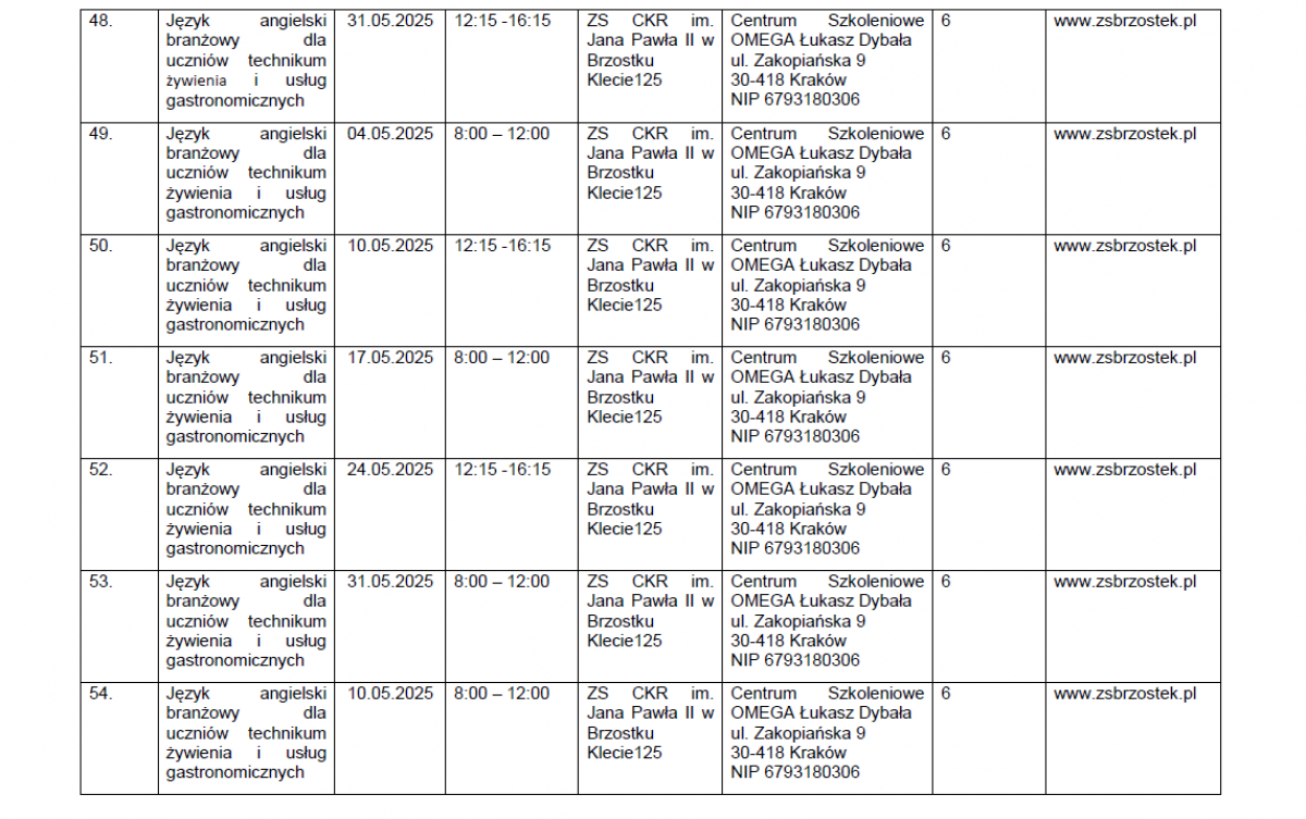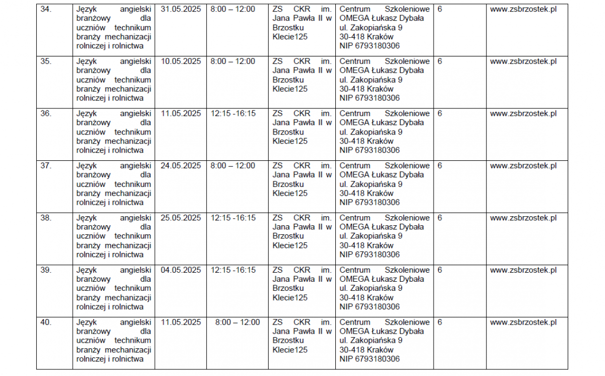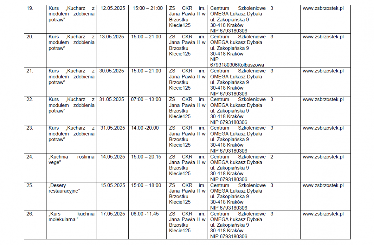 Harmonogram wsparcia - maj 2025 aktualizacja 2