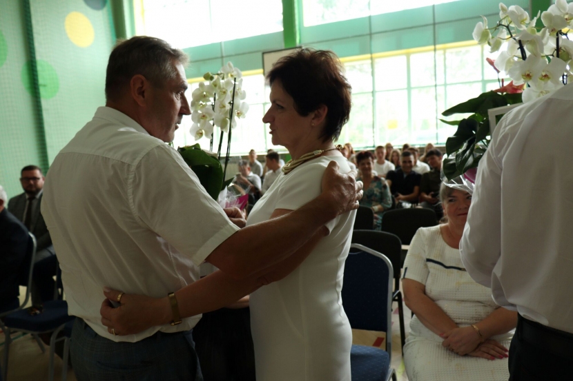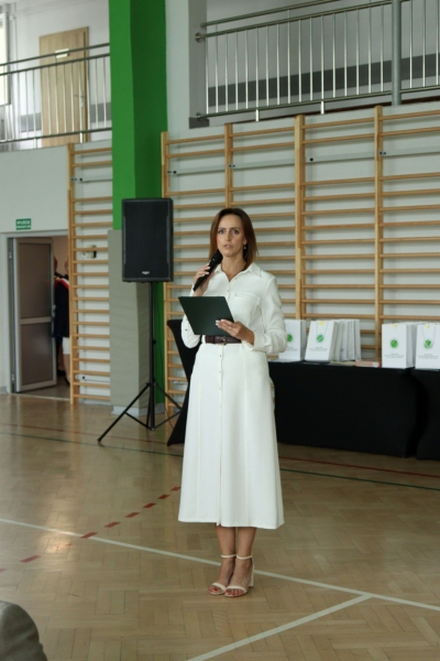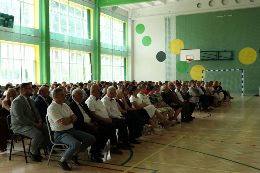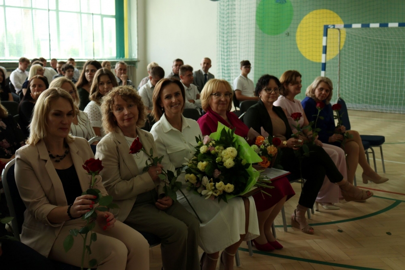 Zakończenie roku szkolnego w naszej szkole było szczególnie wyjątkowe i to nie tylko ze względu na obecność dostojnych gości. W tym dniu żegnaliśmy odchodzące na emeryturę wspaniałe Panie, które przez kilka dekad kształtowały nasz Zespół Szkół: Pani Grażynka Wąsik, która po nieprzerwanej pracy na stanowisku sekretarza szkoły przechodzi na zasłużoną emeryturę. Trudno wyobrazić sobie codzienne funkcjonowanie naszej szkoły bez Jej obecności – zawsze pomocnej, życzliwej i niezawodnej. Dla wielu pokoleń uczniów, rodziców i nauczycieli była nie tylko osobą odpowiedzialną za sprawy administracyjne, ale przede wszystkim sercem szkoły – uosobieniem spokoju, kompetencji i dyskrecji. Pani Grażynka rozpoczęła pracę w naszej placówce w roku 1978, kiedy szkoła wyglądała zupełnie inaczej – zarówno pod względem organizacyjnym, jak i technologicznym. Przez te wszystkie lata była świadkiem wielu zmian, reform i wyzwań, które z ogromnym zaangażowaniem współtworzyła i wspierała. Jej wiedza, doświadczenie oraz oddanie były nieocenionym wsparciem dla kolejnych dyrekcji i całej kadry pedagogicznej. Kolejna wspaniała koleżanka, którą żegnaliśmy w tym dniu, to Pani Terenia Młyniec, pracująca w naszym Zespole Szkół od 1983 roku. Jej uśmiech, spokój i nieustanna gotowość do pomocy były dla uczniów i nauczycieli codziennym wsparciem i inspiracją. Dzięki niej biblioteka była nie tylko miejscem książek, ale też ostoją spokoju, rozmów i poszukiwań – nie tylko tych literackich, ale także aktorskich, ponieważ przez ponad 20 lat współtworzyła wraz z młodzieżą życie kulturalne w szkolnej Kawiarence Teatralnej. Pani Gosia Jop, również odchodząca na emeryturę pracowała w naszej szkole równie długo, bo od 1991 roku, trudno w kilku słowach podsumować jej wkład w życie szkoły. Zawsze z uśmiechem, z sercem na dłoni, z niesłabnącym zaangażowaniem i szacunkiem dla każdego ucznia oraz nas koleżanek i kolegów z pracy. Przez 25 lat pełniła funkcję lidera Zespołu Wychowawców Klasowych, czuwając między innymi nad pogłębianiem dziedzictwa Patrona szkoły Jana Pawła II i pielęgnowaniem pamięci o Nim oraz z wielkim zaangażowaniem przygotowywała młodzież do egzaminu maturalnego z matematyki. Pani Gosia Trojan, to kolejna koleżanka żegnana w tym dniu, Pani Gosia była nie tylko księgową z wieloletnim doświadczeniem i wyjątkową rzetelnością, ale także osobą, na którą zawsze można było liczyć – zarówno w sprawach zawodowych, jak i międzyludzkich. Dzięki jej zaangażowaniu, sumienności i skrupulatności nasza szkoła mogła funkcjonować sprawnie i bezpiecznie od strony finansowej. Ostatnia koleżanka, która wraz z końcem roku szkolnego odeszła na emeryturę to Pani Ela Kolbusz, która po wielu latach cichej, ale jakże ważnej obecności, żegna się ze szkołą i przechodzi na emeryturę. Przez dekady dbała o porządek w korytarzach, klasach i sercach całej społeczności szkolnej. Jej praca, choć często niedostrzegana, była fundamentem codziennego funkcjonowania szkoły. Dziękujemy Wam DROGIE KOLEŻANKI za lata oddanej pracy, zaangażowania i serca włożonego w wspólne dzieło — życzymy Wam wielu radosnych chwil na zasłużonej emeryturze.
