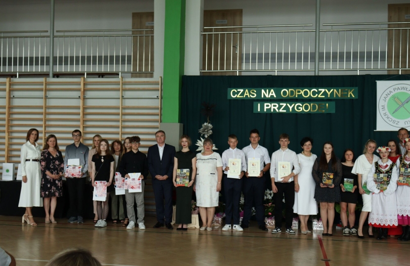 Zakończenie roku szkolnego, to czas, aby po całorocznym trudzie z radością odebrać świadectwa promocyjne z wyróżnieniem, nagrody za wysoką frekwencję oraz nagrody za wzorowe zachowanie, dobre wyniki w nauce i zaangażowanie w życie szkoły. Zaproszeni rodzice również mieli powód do radości i dumy, ponieważ odebrali listy gratulacyjne od Dyrekcji Zespołu Pani Katarzyny Grygiel oraz wychowawców za wyróżniające wyniki w nauce swoich dzieci.
