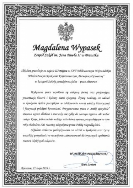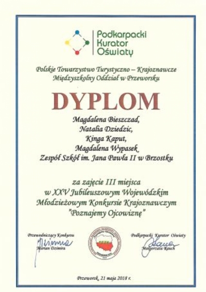 III miejsce w XXV Wojewódzkim Konkursie Krajoznawczym "Poznajemy Ojcowiznę" w Przeworsku.