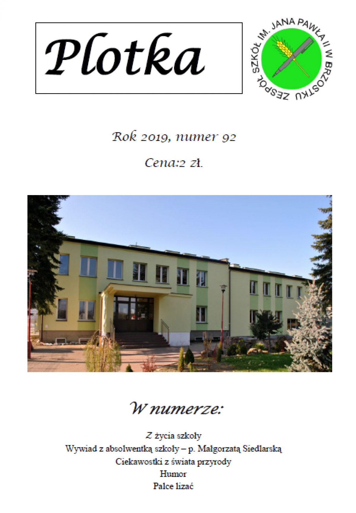 Zachęcamy do zapoznania się z 92 numerem "Plotki", który jest do nabycia w bibliotece szkolnej.