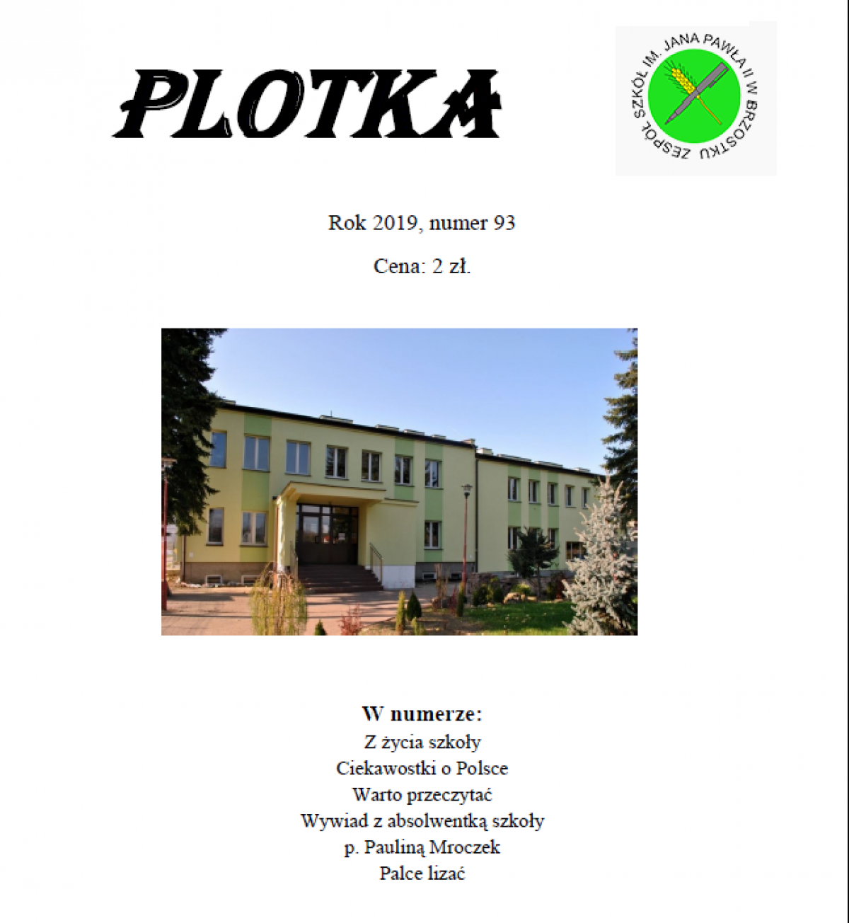 Zachęcamy do zapoznania się z 93 numerem "Plotki", który jest do nabycia w bibliotece szkolnej.
