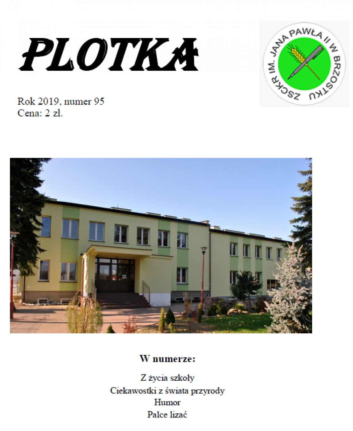 Zachęcamy do zapoznania się z najnowszym 95 numerem "Plotki", który jest do nabycia w bibliotece szkolnej