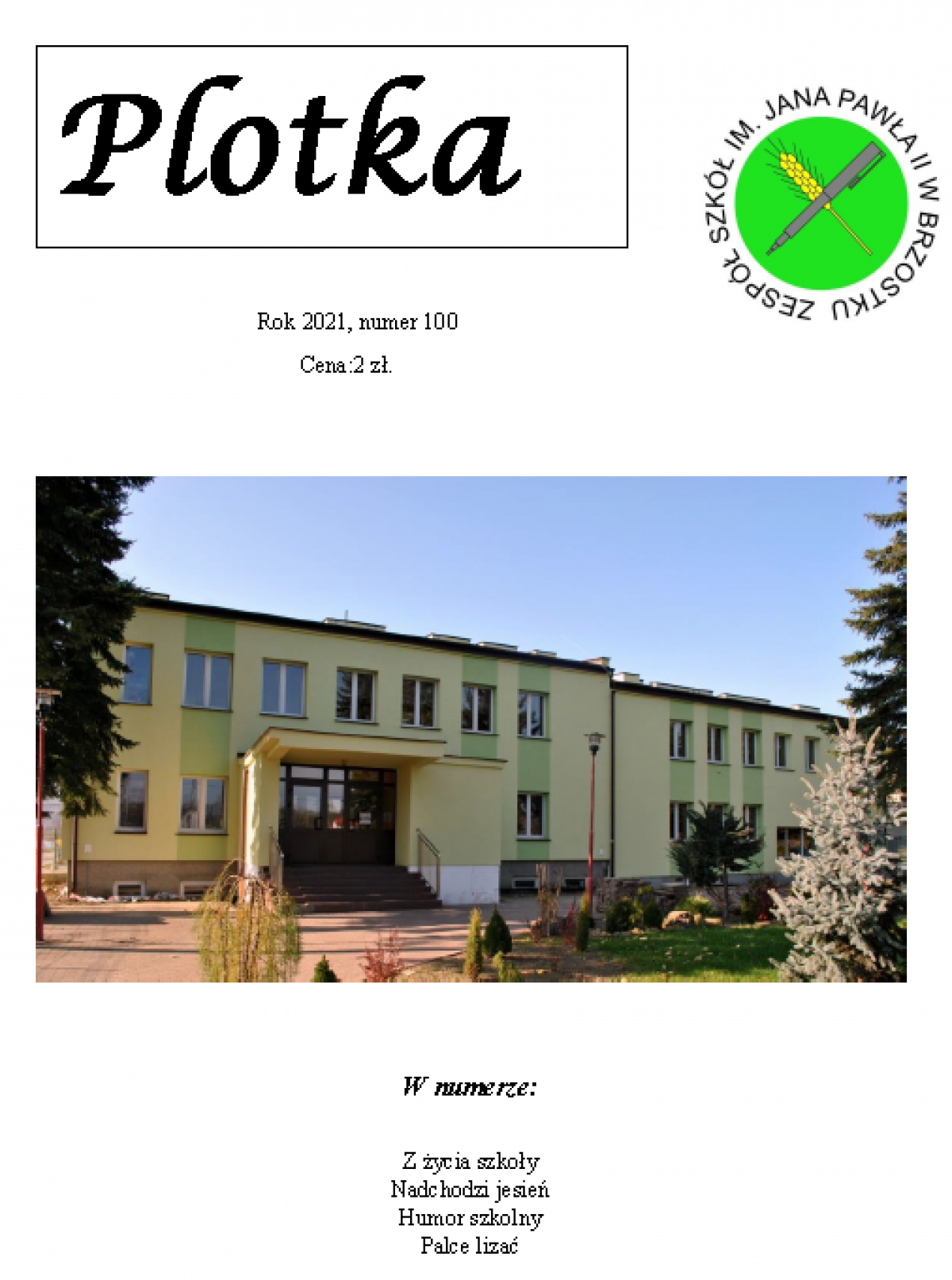 Zapraszamy do zapoznania się z październikowym numerem "Plotki", który jest do nabycia w bibliotece szkolnej.