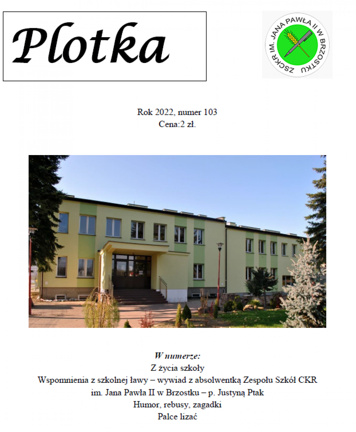 Zapraszamy do zapoznania się z 103 numerem "Plotki", który jest do nabycia w bibliotece szkolnej.