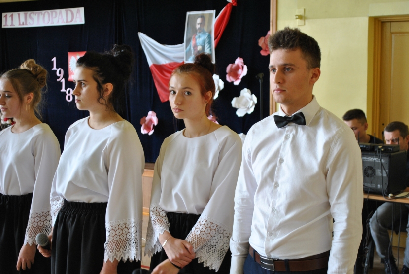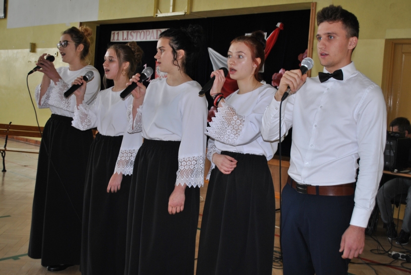 Obchody 101 rocznicy Odzyskania Niepodległości w naszej szkole rozpoczęły się o godz.11.11 odśpiewaniem hymnu państwowego przez społeczność szkolną.