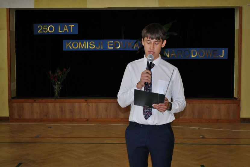 Dnia 13.10.2023 r. w naszej szkole odbyła się akademia z okazji 250 rocznicy powstania Komisji Edukacji Narodowej. Uroczystość rozpoczęła się odśpiewaniem hymnu państwowego po którym głos zabrała Dyrektor szkoły pani Katarzyna Grygiel. Mówiła o trudnej, ale jakże pięknej pracy nauczyciela, podziękowała za dotychczasowe zaangażowanie oraz życzyła wielu sił i wytrwałości w tym wyjątkowym zawodzie. Dziękowała również pracownikom administracji i obsługi szkoły, którzy również mają swój udział w wychowaniu młodzieży. Następnie odbyła się ceremonia wręczenia Nagród Dyrektora Szkoły nauczycielom, którzy wyróżnili się w ubiegłym roku szkolnym wzorową pracą dydaktyczno-wychowawczą. Nagrodzeni zostali: p. Małgorzata Jop, p. Teresa Młyniec, p. Teresa Radelczuk, p. Małgorzata Batycka, p. Agnieszka Płaziak, p. Mariola Świszcz, p. Andrzej Jedziniak.