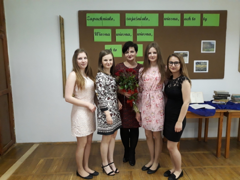 Ostatnie spotkanie z Kawiarenkowiczami na uroczystej akademii kończącej ich rok szkolny. Za rzetelną, czteroletnią pracę w Kawiarence Literackiej z rąk dyr szkoły pani Katarzyny Grygiel nagrody otrzymali: Weronika Stawarz, Daria Drozd, Urszula Winiarska ,Klaudia Michońska , Renata Wadas oraz Dominik Chodur. Dziękujemy im za reprezentowanie szkoły w środowisku szkolnym i lokalnym.Za wspaniałe role m.in. w spektaklu Świat według Dulskich, za grę w Nietolerancji i wielu innych przedsięwzięciach. Na koniec wspólne zdjęcie , piękny bukiet róż i obietnica , że będą odwiedzać "swoje miejscówki" w bibliotece szkolnej.Do zobaczenia!