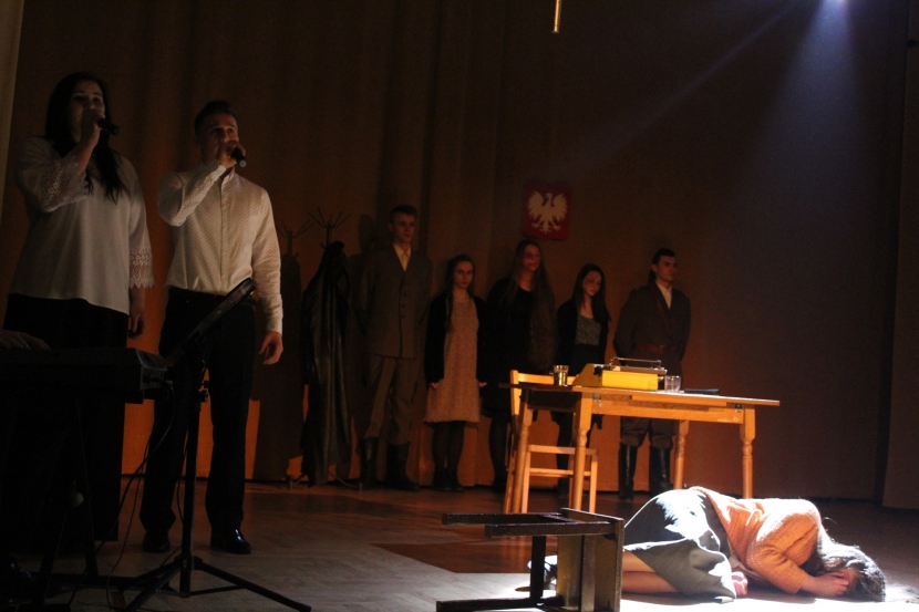 Z okazji Narodowego Dnia Pamięci Żołnierzy Wyklętych, uczniowie naszej szkoły wystawili spektakl teatralny pt. INKA -ZACHOWAŁAM SIĘ JAK TRZEBA. Spektakl powstał z inicjatywy i pod opieką Teresy Młyniec, Małgorzaty Augustyn i Małgorzaty Kmiecik w ramach ogólnopolskiego projektu edukacyjnego wydawnictwa Nowej Ery "Projekt z klasą" w którym zostaliśmy nagrodzeni jako jedna z nielicznych szkół w Polsce. Zostały wręczone dyplomy przez przedstawicieli wydawnictwa dla opiekunów i uczniów, został przekazany szkole grant oraz certyfikat "Dobrze zaprojektowana szkoła". Ze względu na duże zainteresowanie sztukę wystawiliśmy dwukrotnie 1 marca - dla szkół podstawowych i gimnazjów z gminy Brzostek, 4 marca dla społeczności lokalnej, a także 7 marca dla nauczycieli i uczniów naszej szkoły. W rolę Danuty Siedzikównej ps. "Inki" wcieliła się Kinga Pruchnik Ubeka zagrał Wojciech Zastawny Major Zygmunt Edward Szendzielarz ps. "Łupaszko" - Marcin Marszałek Regina - Aldona Michońska Sanitariuszki więźniarki - Dominika Płaziak, Julia Żygłowicz Wokal - Karolina Stasiowska, Patryk Smołucha Klawisze - Kamil Błoniarz Światło & dźwięk - Piotr Sienkowski Zdjęcia & montaż - TV Brzostek Paweł Batycki Bardzo dziękujemy za wygłoszoną prelekcję nt. "Żołnierzy wyklętych na terenie powiatu dębickiego" dr Rafałowi Szczygłowi. Również bardzo dziękujemy TV Brzostek Pawłowi Batyckiemu za wideo relację spektaklu. Zdjęcia: Grzegorz Kolbusz, Michał Dziedzic