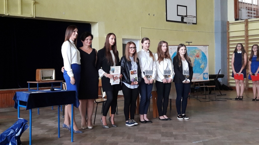 Na uroczystej akademii dyrektor szkoły pani Katarzyna Grygiel oraz opiekun Teresa Młyniec wręczyły nagrody książkowe Kawiarenkowiczom: Weronice Stawarz, Urszuli Winiarskiej, Darii Drozd, Klaudii Michońskiej oraz Paulinie Strączek. Dziewczęta zapracowały na wyróżnienie aktywną postawą w środowisku szkolnym oraz w powiecie, biorąc udział w konkursach i akademiach.
