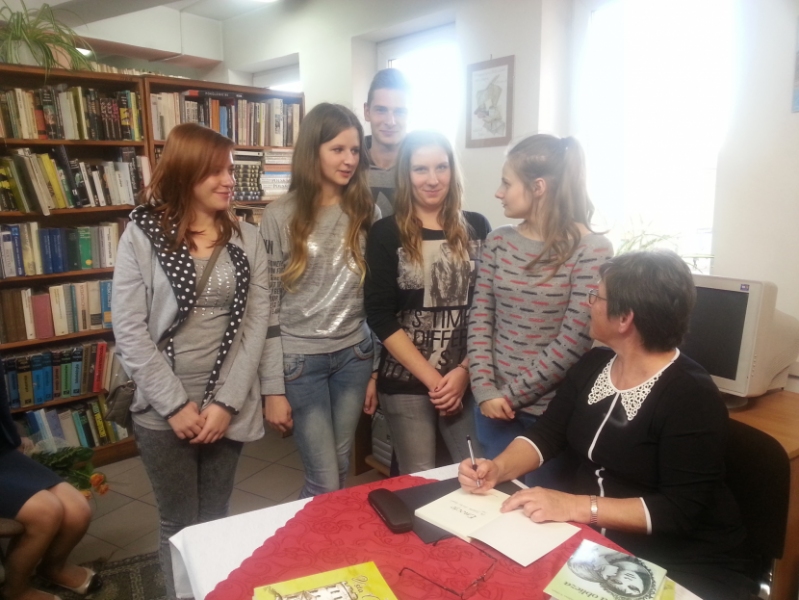 Kawiarenkowicze na spotkaniu z poetką Haliną Urban w Bibliotece Pedagogicznej w Jaśle.