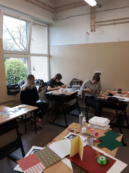 W grudniu w naszej szkole odbył się Kiermasz Bożonarodzeniowy zorganizowany przez członków Klubu Wolontariatu. Wszyscy włożyli wiele pracy i serca w jego przygotowanie wykonując własnoręcznie kartki, ozdoby i obrazy na desce. Zebraliśmy piękną sumkę 756 zł, co było dla nas przemiłym zaskoczeniem. Wszystkim serdecznie i z całego serca bardzo dziękujemy za włączenie się w naszą akcję. Za uzbieraną kwotę zakupiliśmy artykuły szkolne i plastyczne dla podopiecznych Domu Dziecka w Kołaczycach.