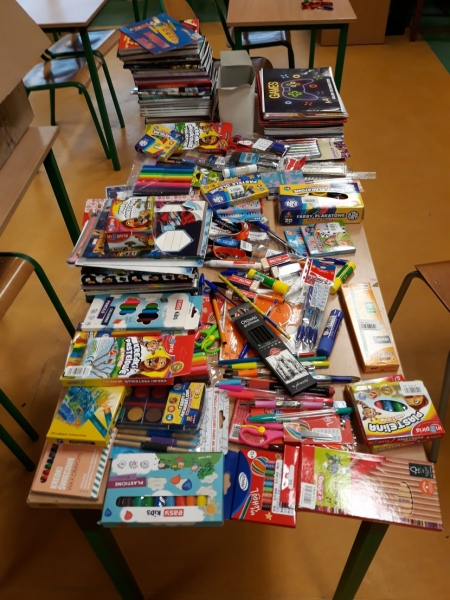 Z całego serca dziękujemy wszystkim darczyńcom – uczniom, rodzicom, nauczycielom i pracownikom szkoły, którzy licznie odpowiedzieli na nasz apel, dzięki czemu udało się zebrać bardzo dużo potrzebnych artykułów. Nasi wolontariusze posegregowali je i spakowali w kartony do przekazania Środowiskowemu Domowi Opieki Społecznej w Brzostku im. Jana Pawła II przy stowarzyszeniu „Nieść nadzieję”.