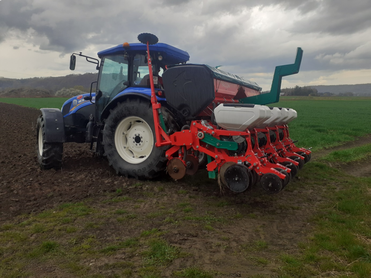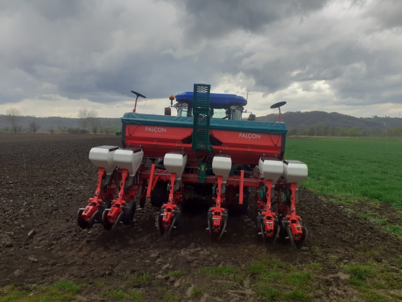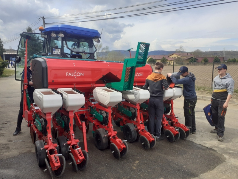 W dniu 25 kwietnia uczniowie z koła mechanizacyjnego mieli możliwość sprawdzić w warunkach rzeczywistych na działkach szkolnych, za zgodą firmy Agro-Masz, siewnik Falkon sześciorzędowy oraz bronę talerzową do uprawy przedsiewnej. Z niecierpliwością czekaliśmy na umówioną godzinę przyjazdu wybranych maszyn. Firma Agro- Masz dotarła do nas w godzinach porannych. Uczniowie zaangażowali się w rozładunek oraz podpięli maszyny do ciągników. Następnie po dokonaniu regulacji, a także uzupełnieniu zbiorników w nasiona oraz nawóz mieliśmy okazję przyjrzeć się z bliska maszynom podczas testów na działkach szkolnych. Siewnik Falcon umożliwia nie tylko wysiew nasion kukurydzy, ale także innych gatunków roślin, które wymagają siewu punktowego oraz jednoczesny podsiew nawozów, co przy dzisiejszych cenach ma bardzo duże znaczenie w optymalnym zagospodarowaniu nawozów sztucznych. W naszej ocenie siewnik wypadł pozytywnie - brakowało jedynie trochę udźwigu tylnego układu zawieszenia w ciągniku New Holland . Natomiast brona talerzowa do uprawy przedsiewnej wymagała ciągnika o większej mocy. Jednak sposób doprawienia przez nią gleby dobrze się prezentował na glebach lżejszych w porównaniu glebami ciężkimi. Naszym zdaniem sprawdzanie sprawności nowych maszyn jest kluczem do ich lepszego poznawania, obsługiwania jak i doskonalenia umiejętności w rozwoju kierunku mechanizacji rolnictwa za co jesteśmy wdzięczni firmie Agro- Masz.