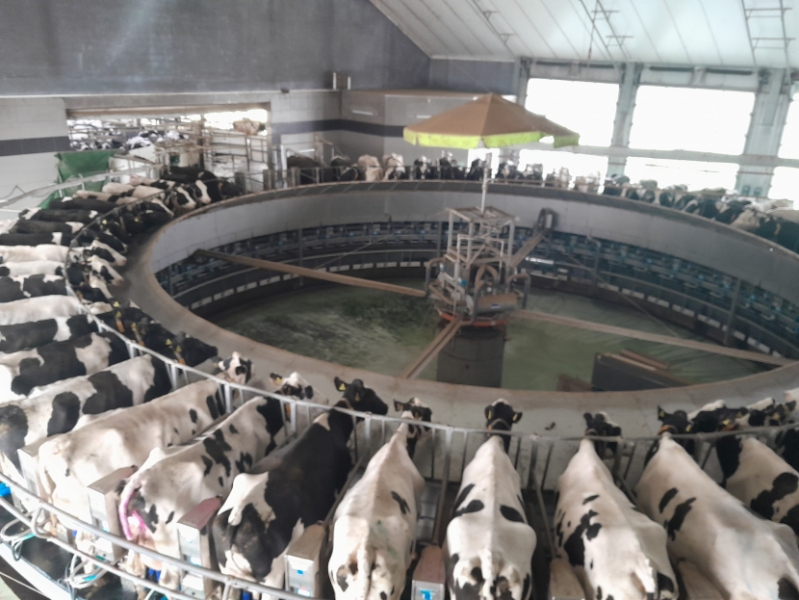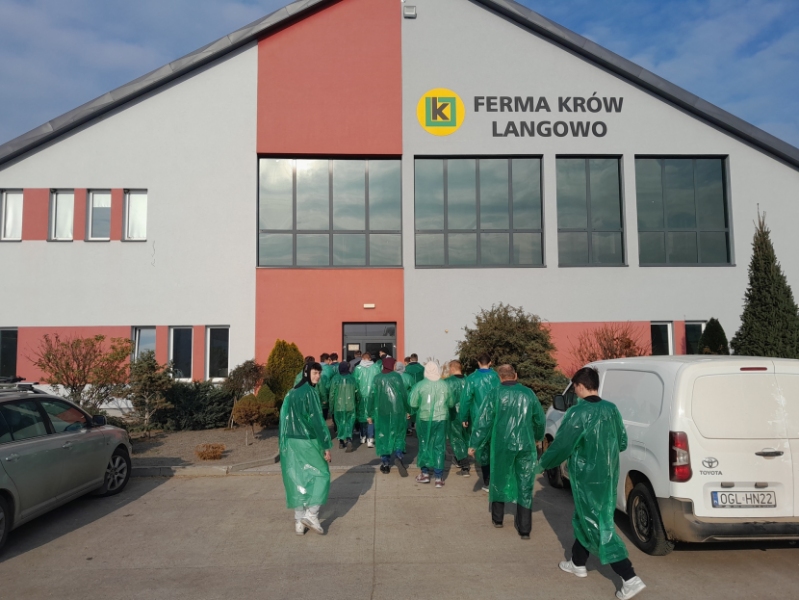 Innym technologicznym urządzeniem są „cyfrowe mapy zasobności pola w składniki pokarmowe”. Występuje dokładna analiza próbek glebowych, zliczana następnie przez komputery, które je analizują i przetwarzają, aż powstanie szczegółowa mapa z jasnymi instrukcjami – co, w jakim miejscu siać. W drugiej części wycieczki udaliśmy się do fermy krów mlecznych, gdzie w jednej oborze znajduje się ponad 1000 sztuk krów dojnych - był to czas udoju na dojarni karuzelowej. Uczniowie byli zafascynowani nowoczesną oborą oraz rozwiązaniami w dziale produkcji zwierzęcej, w którym zastosowanie systemu zarządzania stadem pozwala na optymalne wykorzystanie potencjału genetycznego krów. Dzięki niemu są one również hodowane w sprzyjających dla nich warunkach. Każda sztuka ma na sobie pedometr, który analizuje na podstawie kroków ich stan zdrowotny czy też inne potrzeby. Postęp hodowlany pozwala na uzyskiwanie znakomitych rezultatów, a zastosowanie transplantacji zarodków potwierdza nowoczesne rozwiązania w dziedzinie biotechniki. Zwierzęta, gdy są znudzone, mogą same się pomasować ustawiając się w kolejce do czochradeł, które zapewniają im idealne czyszczenie i pielęgnację sierści.