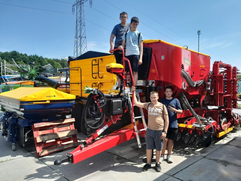W dniu 6 kwietnia 2022 roku szkolne koło mechanizacyjne „Traktorek” na zaproszenie firmy AGRO- MASZ z siedzibą w Strzelcach Małych, skorzystało z wycieczki dydaktycznej mającej na celu zapoznanie się z produkcją maszyn rolniczych. W trakcie zwiedzania mogliśmy zobaczyć na własne oczy jak wygląda technologia wykonania maszyn rolniczych i zapoznać się z całym cyklem produkcji - od przyjęcia blachy poprzez wykorzystanie nowoczesnych urządzeń sterowanych numerycznie wraz z automatyzacją całego procesu produkcji aż do momentu oddania gotowej maszyny na plac przedsiębiorstwa. Uczniowie mieli również możliwość zapoznania się z obsługą siewnika punktowego Falcon, z którego szkoła będzie mogła skorzystać w ramach współpracy z firmą. Dodatkowo też AGRO – MASZ udostępni nam agregat do uprawy przedsiewnej w celu sprawdzenia, wykonania testów w warunkach rzeczywistych. Ważnym momentem w trakcie wizyty był udział w wykładzie prowadzonym przez firmę Agrii, gdzie mogliśmy się dowiedzieć jak zmniejszyć ilość stosowanych pestycydów czy nawozów sztucznych, a także jak należy integrować metody agrotechniczne w uprawie roślin, by przynosiły efekty. Na koniec wydarzenia każdy z uczestników otrzymał upominek oraz możliwość wykorzystania maszyn w trakcie siewu kukurydzy na działkach szkolnych w celu doskonalenia znajomości z obsługi i poznania maszyn rolniczych, za co bardzo jesteśmy wdzięczni Firmie AGRO- MASZ.