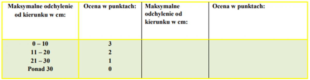 Punktacja w tabelach poniżej. Ocena za prostoliniowość pierwszej bruzdy Tabela 1