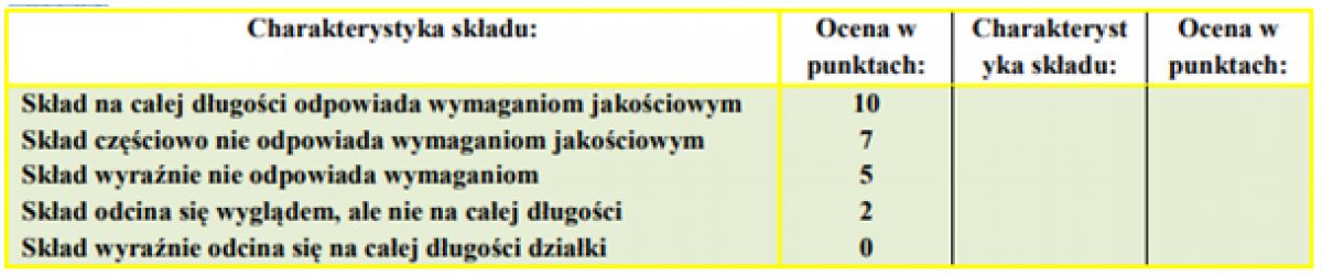 Ad.2.2. Ukształtowanie powierzchni i jakości składu (0 - 10 pkt.) Zewnętrzny wygląd powierzchni składu nie powinien odróżniać się od pozostałej orki na tej samej połowie działki. Skiby powinny być odpowiednie do typu orki. Całość składu nie może być wygrzbiecona ani zapadnięta.
