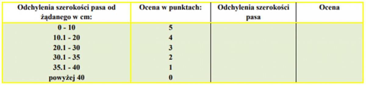 • równoległości boków 0 – 5 pkt. Ocena szerokości pasa nie zaoranego Tabela 5