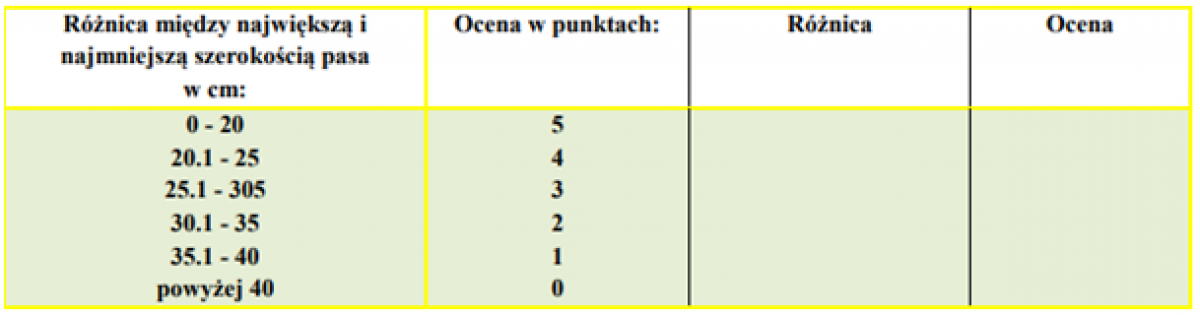 Ocenę przeprowadza się wizualnie, przydzielając punkty wg tabeli 7.