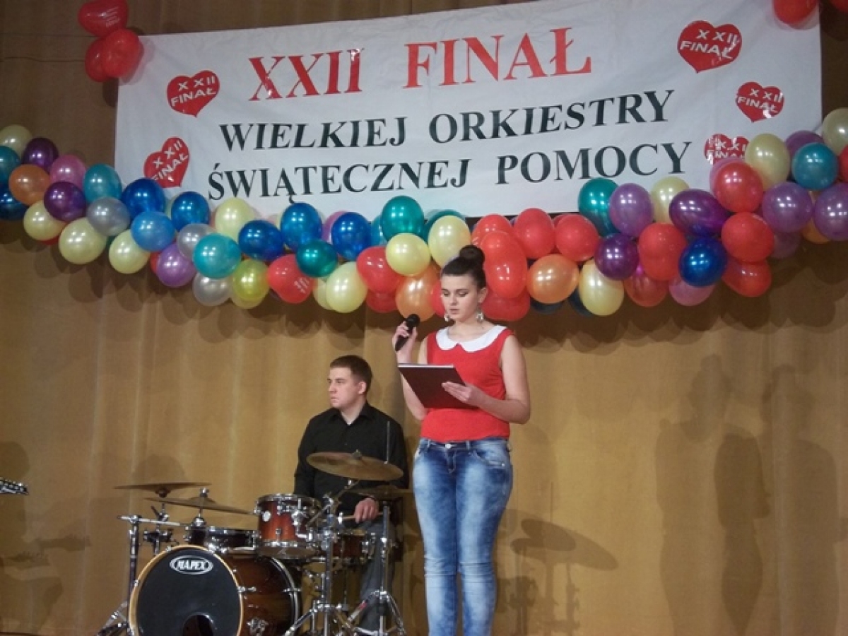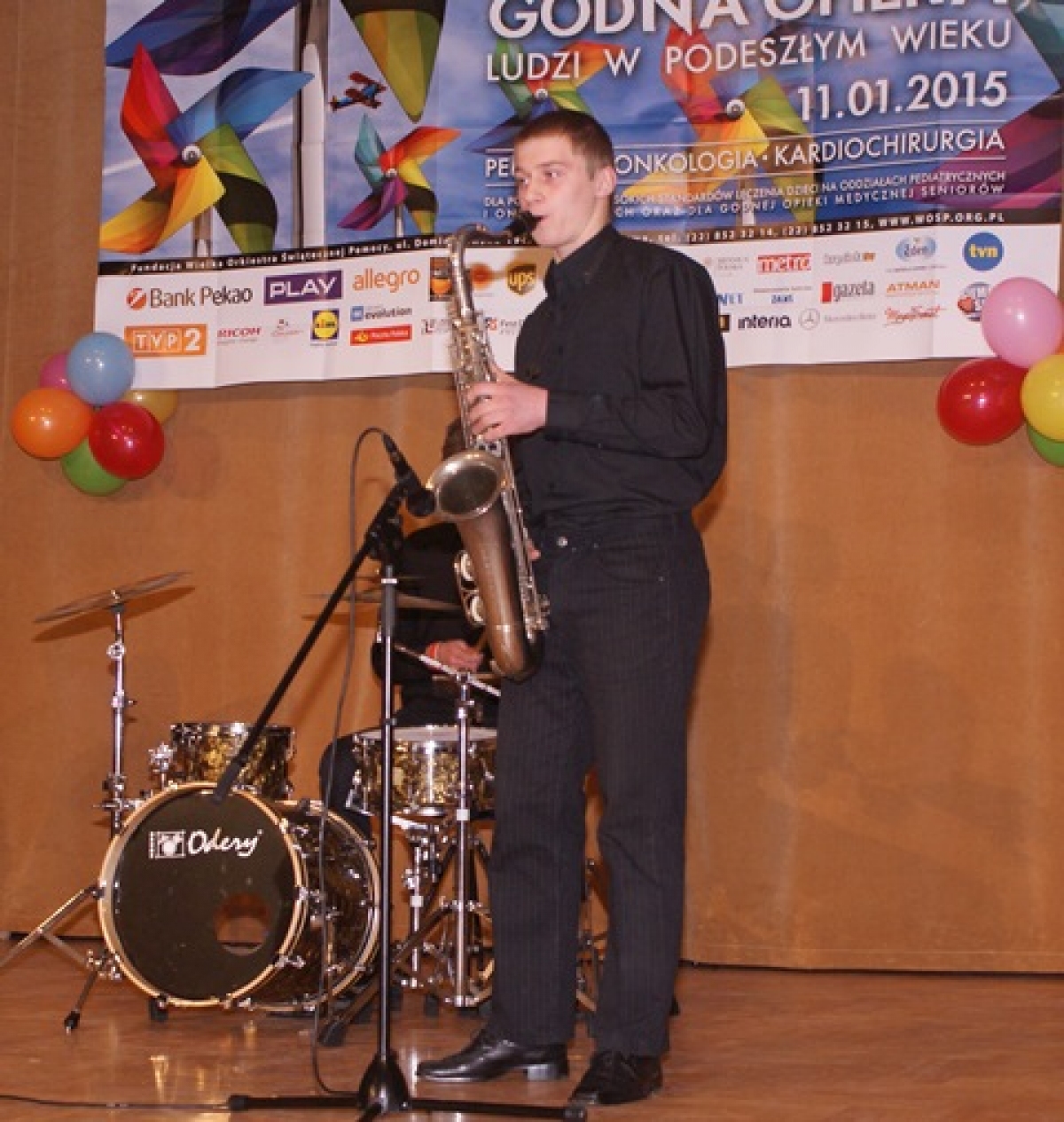 Szkolny Zespół Muzyczny bierze aktywny udział w XXI Finale Wielkiej Orkiestry Świątecznej Pomocy. Uczniowie naszej szkoły prezentują kolędy i pastorałki. W występie udział biorą: Katarzyna Kardasińska - solistka, Dariusz Nowak - saksofon, Mateusz Jurek - gitara, Sebastian Kuk - instrument klawiszowy, Mariusz Buras - perkusja. Nasz występ cieszy się dużym uznaniem publiczności.