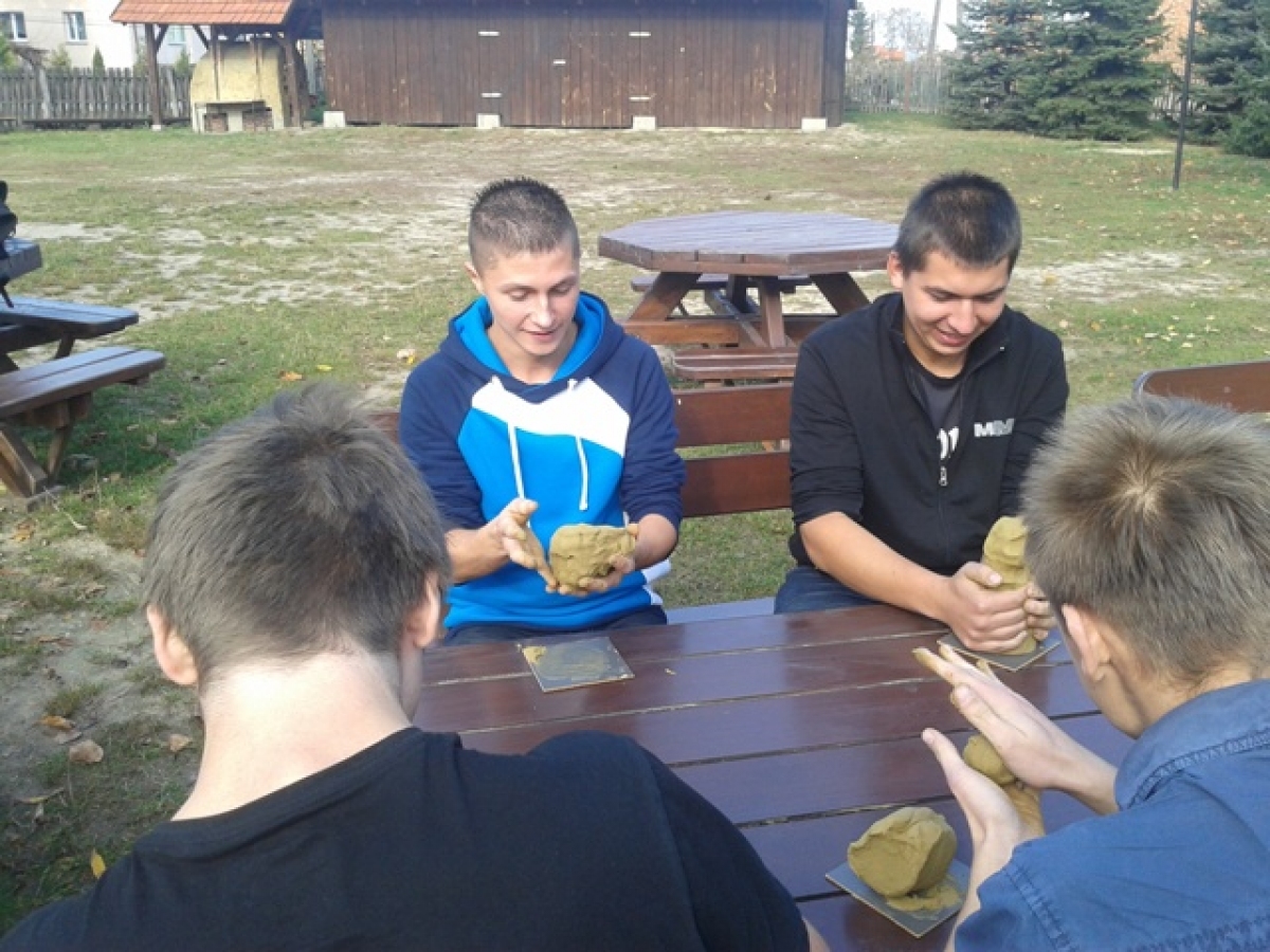 W środę 23 października wyruszyliśmy na warsztaty lepienia z gliny do Medyni Głogowskiej, droga daleka, ale bawiliśmy się fantastycznie