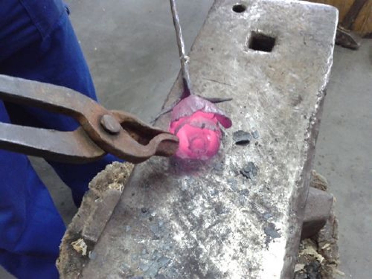 Z rozgrzanego metalu przy pomocy młotka na kowadle tworzyli różnorodne kształty.