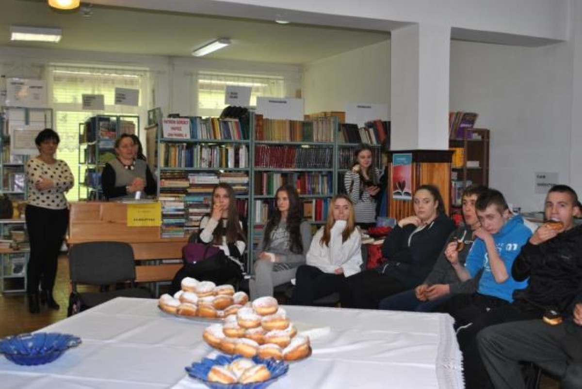 W styczniu skorzystaliśmy z zaproszenia biblioteki szkolnej na Bożonarodzeniowe spotkanie ,,Kawiarenki Literackiej’’, przygotowaliśmy okolicznościowe słodkości.
