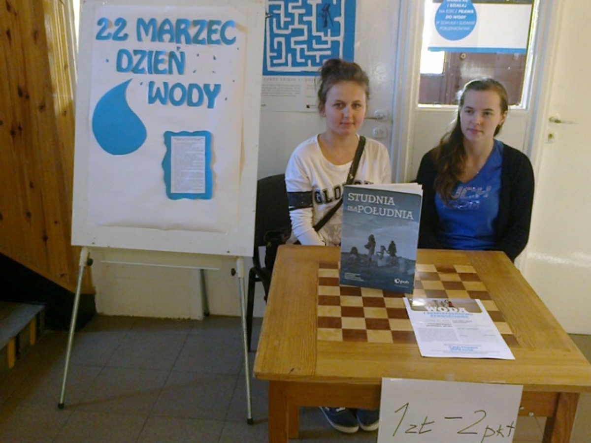 Dzień Wody uczciliśmy włączając się w program Polskiej Akcji Humanitarnej - „Woda dla Południa”. Uczniowie naszej szkoły mieli okazję zapoznać się z problemami głodu i braku wody w Afryce i Azji. Przyłączyliśmy się do zbiórki funduszy na budowę studni w Sudanie.
